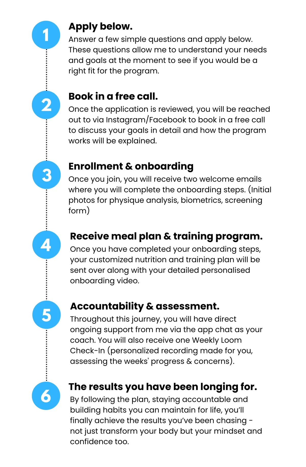 Weekly Loom check-ins, progress tracking, and direct ongoing support from me through message and voice notes.